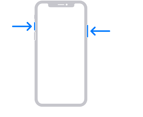 1. 측면 버튼과 음량 높이기 버튼을 동시에 누릅니다.